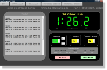 Die Aussenanzeige zeigt dem Teilnehmer für 7 sec. die Tiernummer , danach die laufende Zeit an.