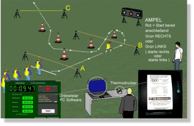 Sprintmaster ist ein zukunftsweisendes PC gestütztes Zeitnahmesystem der neuesten Generation.Ein System, das Messdaten über die Antrittszeit , das Sprintvermögen , die Richtungswechselzeit ,das Pendelvermögen, die Parcoursgesamtzeit sowie die Geschwindigkeit des Teilnehmers in km/h uvm. in EINEM Messvorgang erfasst. Es ermöglicht individuelle Slalom- Parcours- und Dribbelmessungen mit nahezu unbegrenzten Gestaltungsmöglichkeiten. Sprintmaster läßt Ihrer Trainerkreativität freien Lauf !Über traditionelle Messvorgänge hinaus, können Sie Ihren persönlichen und individuellen Parcours gestalten !Von Sprintmessungen z.B. 5,10,100m inkl. Zwischenzeiten bis zu komplexen Reaktions- / Pendel / Sprint Messvorgängen.Einhergehend mit optischer Startrichtungsvorgabe ( rechts - links ) z.B zur Antritts - / Reaktionszeiterfassung . Die Antrittszeit kann wahlweise über akustische Signalisierung oder über optische Signalisierung erfolgenSämtliche Messdaten werden in 1/100stel Sekunden erfasst und “just in time “ ausgedruckt. Sprintmaster liefert nicht nur aufschlußreiche Messdaten ... Sprintmaster sorgt zusätzlich für Unterhaltung und Spaß. Sprintmaster fördert den Ego und erzeugt eine hohe Motivationssteigerung bei “ jung & alt “. Der Teilnehmer erhält unmittelbar nach der Zieldurchquerung einen Bonausdruck mit seinen Messdaten und kann sich somit sofort mit anderen Teilnehmern vergleichen, diskutieren, austauschen und sich im nächsten Lauf u.U. verbessern.