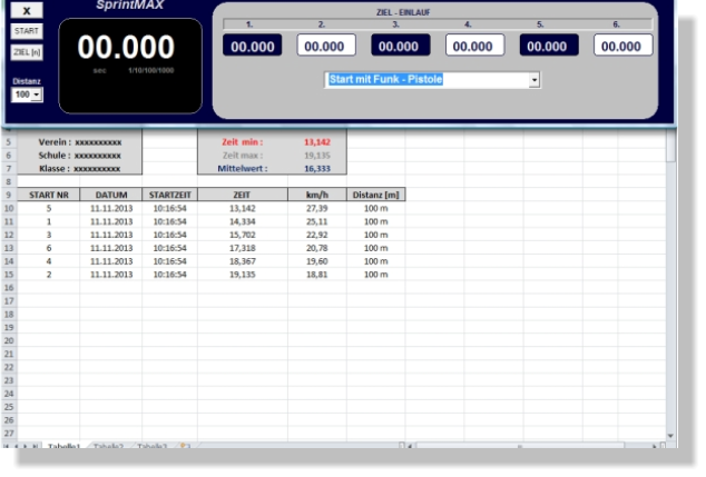 Sprintmessung / Hürdenlauf / Hindernislauf für 1 bis 6 Bahnen