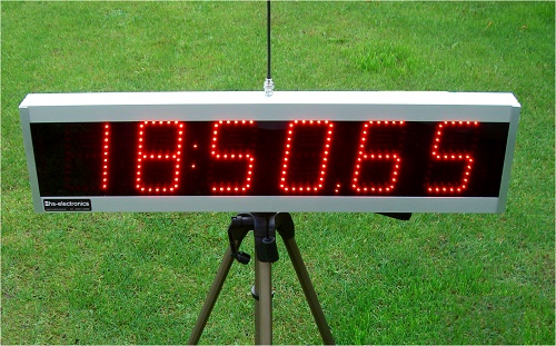 Bei Startbeginn werden alle aufgestellten Anzeigetafeln synchron durch ein entsprechendes Funksignal automatisch gestartet.